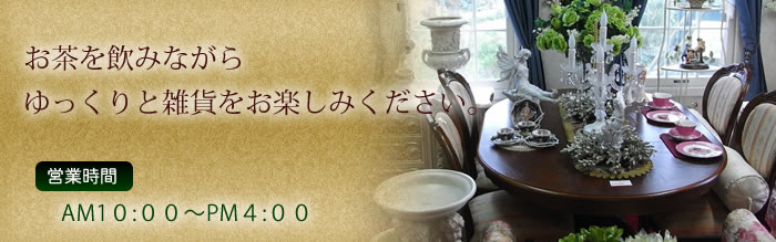 お茶を飲みながら ゆっくりと輸入雑貨をお楽しみください。
