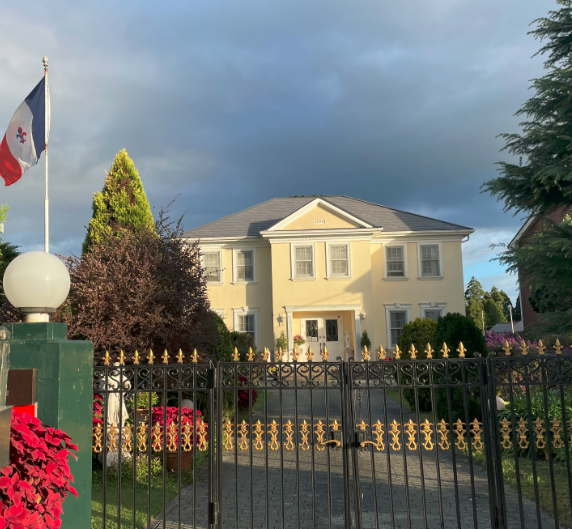 真っ赤なコリウス、紫のメキシカンセージ、トレニア、ランタナが庭を彩っています。